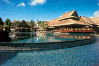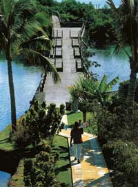 | Посмотреть фотографии БЕЛЬМОНДО - А где, наконец, уже Бельмондо? Одна из наших барышень еще в Москве требовала поехать в отель, куда, по ее сведениям, каждый год приезжает Бельмондо. В принципе, ничего удивительного - на Маврикии вообще отдыхает очень много французов. Первое, что барышня сделала, попав в «отель с Бельмондо», - упала в бассейн. В холле. Дело в том, что весь отель стоит как бы посреди лагуны. Вода здесь повсюду - причем налито до краев, без кромки: если заглядишься, то можно угодить в какой-нибудь резервуар. Девушку спасли и шепнули в утешение: даже и Бельмондо однажды пропустил конец твердой земли и шмякнулся, причем как раз в этот бассейн, - ничего, вытащили, высушили. Травм ни у кого не бывает, и поэтому бассейны не огораживают, чтобы не искажать естественный дизайн. Отель Le Prince Maurice открылся совсем недавно, в 1998-м, в честь 400-летия завоевания Маврикия голландцами; он назван по имени голландского принца, в честь которого и остров окрестили Маврикием. На открытие специально приезжал член голландской королевской семьи. Это огромный отель, прилепившийся к лагуне очень причудливой формы - она глубоко и эдак разлаписто вдается в берег. Сумасшедший ландшафтный дизайн - что-то вроде английского парка. Довольно трудно различить. где кончается лагуна и начинается бассейн, - кажется, что из бассейна можно заплыть прямо в номер. Здесь, пожалуй, лучшее купание на Маврикии. Особенность «Принца» - бунгало на сваях. Еще здесь есть далекий ресторан, к которому надо долго идти по подвесному мостику мимо заводей, где держат устриц, мимо бассейнов с экзотическими рыбинами - наконец ты оказываешься в беседке где-то на краю света, там всего пять-шесть столиков, на деревьях развешаны китайские фонарики... Разумеется, места сюда надо заказывать хотя бы за пару дней. Даже если ты Бельмондо. ЦВЕТА На пятый день мы угодили на довольно шумное местное развлечение - поездку на пиратской шхуне. Это такой баркас, который ведет экипаж, состоящий из двух индусов, которые занимаются собственно морской частью, и четырех крайне живописных креолов, одетых, как пираты на детском утреннике, в разноцветные атласные рубахи, с банданами на головах. Всю дорогу они очень приличными голосами горланят песни на английском языке, аккомпанируя себе на тамтамах и гитаре. Артисты первоклассные. Шхуна уходит на какую-то дальнюю оконечность Маврикия, где можно искупаться в озерце, из которого свергается вниз водопад. Пока мы купались в водопадном озере, пираты не сидели без дела: они пожарили на углях куски голубого марлина и лобстеров - надо сказать, очень недурная закуска во время морской прогулки. Запивается все это ромом; уверяю вас, под марлина пьют все, даже трезвенники и язвенники. Не менее знаменитая, чем марлин, достопримечательность Маврикия - Семицветная земля, чудо природы. Чтобы попасть на нее, надо отъехать от берега в глубь острова. Горная дорога петляет немилосердно - мимо плантаций кофе, чая, капустной пальмы; после нескольких десятков поворотов вы оказываетесь в одном из самых странных мест на планете. Семицветная земля похожа на поверхность Юпитера или Альдебарана - это такие довольно массивные бугры, как на горно-лыжном склоне, переливающиеся разными цветами - желтым, рыжим, оранжевым, бурым, фиолетовым. Природа этого явления так и не выяснена - ясно лишь, что э