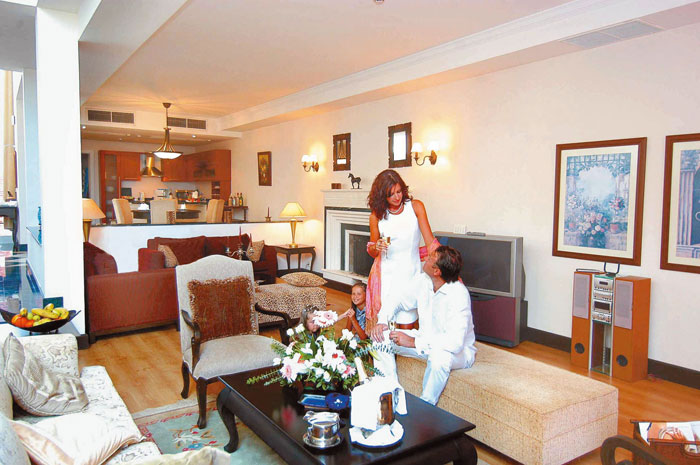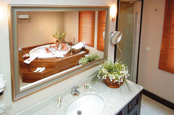 4 VIP-Villas (175 кв. м) - 6 чел., гостиная, 3 спальни с дверями, 3 ванные комнаты, джакузи, банный халат и тапочки, мини-кухня, 2 балкона.