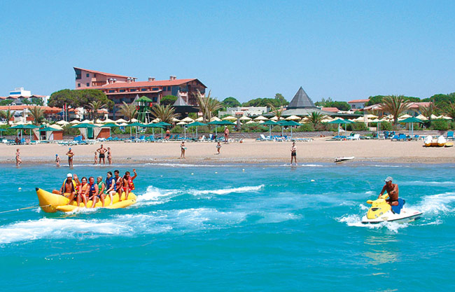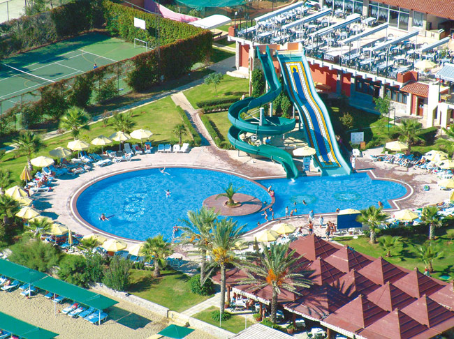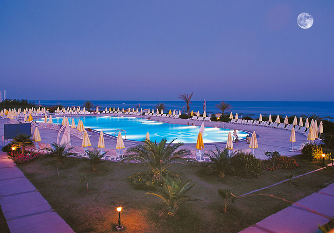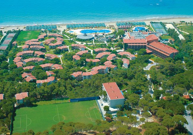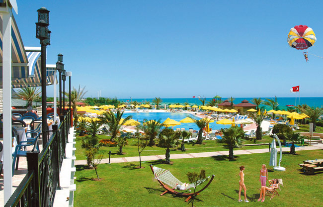 находится в 35 км от международного аэропорта, в 40 км от центра г. Анталия, на берегу моря.