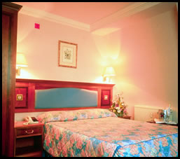 Все 70 комнат, декорированные в теплых тонах, обставленные элегантной мебелью ручной работы, предоставляют набор всего необходимого для современного путешественника: цветной телевизор со спутниковыми каналами и дистанционным управлением, радио, телефон, гладильный пресс, фен для сушки волос, газеты и журналы.