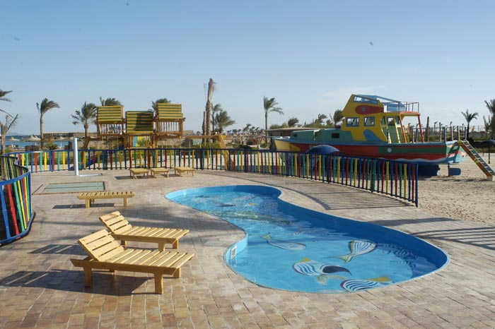 Отдыхала в этом отеле летом в 2009 году. Отель просто потрясающий. Большая, ухоженная территрия, правда мало зелени, но это ввиду того, что отель новый. На территории 3 бассейна (на десткой площадке есть совсем малюсенький для малышей). Шезлонги как у бассена так и на пляже - бесплатные. Номера очень хорошие, убирались каждый день. Мальчик каждый день из одеяла и полотенец делал различные фигурки, что очень радовало, причем денежку за уборку за 14 дней оставили ему только раза три по 1 доллару. Каждый день приносили в номер бесплатную бутылку с водой. Чистые полотенца. На территории 3 ресторана, но если едете по системе "все включено" питаться бесплатно сможете только в одном - в основном ресторане, в двух других (рыбная и мясная кухня) - за доп. плату. Основной ресторан содержит 7 залов, посуды всегда хватает, столиков тоже. Питание очень разнообразное и вкусное. На завтрак, обед, и ужин повара на ваших глазах пожарят вам мясо, постругают салатик из огурчиков, помидор...,приготовят оладушки. )))) Единственный минус - думаю как и во всем Египте некоторые блюда ну уж очень перченые, с непонятными приправами, но кушать можно! Сам персонал очень приветливый. На территории есть два пляжа - первый лагуна, с песчаным входом, второй чуть поодаль там в основном люди купались в масках. Предупреждаю сразу - в лагуне берегитесь маленьких рыбок, если долго стоять в воде они кусают за ноги! ))) На территории есть магазин, обменный пункт, спа салон,проводятся дискотеки как взрослые так и детские. Очень хорошая анимация и рядом с бассейном и на пляже. Пляж к слову - очень чистый, ухоженный. Шезлонгов много - хватит всем. Местные ребята,как только приезжаешь и первые дни пытаешься насладиться солнечными лучами - не дают проходу, так и наровят записать тебя либо в спа салон, либо сделать татуировку хной на любом участке тела и т.д. Но если дать понять что тебе это не нужно (во всяком случае пока) - в этом плане они понимающие и больше не тревожат. За территорией отеля громадное количество сувенирных лавок. Много всякой всячины - вообщем сбивайте цену. ))) Зашли в салон где продают золото, много всякого разного, но уж на мой взгял смотрится египесткое золото как-то дешево! Уж простите кого обидела. Проверила замочки на украшениях -сделаны плохо. Увеличительного стекла для просмотра пробы нету... Так что кто и планирует прикупить украшений будте осторожны. Теперь что касается экскурсий - мы съездили в Луксор. Экскурсия так себе, думаю не понравилась потому что в Египте были первый раз, к тому же летом и была такая несносная жара, что все мысли были только об одном - как добраться до автобуса где кондиционер и холодная бутылка с водой. В Каир по такой жаре так и не рискнули съездить. Теперь что касается сувениров - нам повезло в Луксор ездили с гидом, она сама из Питера, но уже давно живет в Египте, поэтому поделилась очень ценной информацией. Все сувениры живых существ, которые вы покупаете - должны быть в действие (жуки-скоробеи с распахнутыми крылышками, люди должны идти или что-то делать). Что касается фигурок фараонов, кошек - смотрите что бы они были НЕ НА ПОДСТАВКЕ (то есть кошка должна сидеть на своих лапках, фигурка человека должна стоять на ногах), так же у фигурок людей - не должны быть скрещены руки на груди. Все эти "неправильные" сувениры на самом деле фигурки для погребения. Их по 