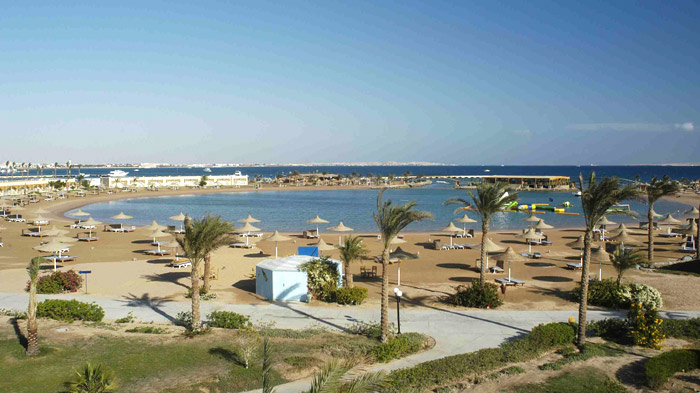 10 км от аэропорта и в 15 км от центра Хургады, на самом берегу моря.