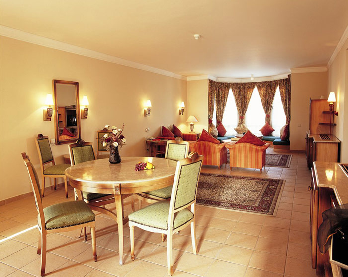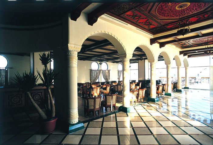 Отель построен в традиционном арабском стиле на берегу моря. 113 номеров с видом на море, 184 номера с видом на бассейн и 126 номеров с видом на парковую территорию отеля.