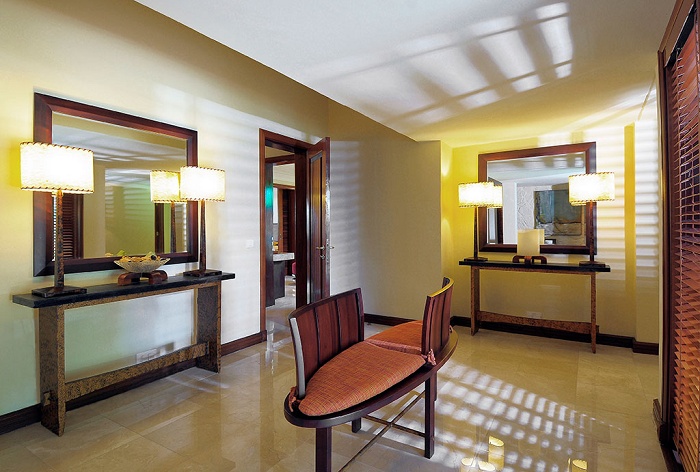 1 Presidential Villa (650 кв.м.) - двухэтажная дизайнерская вилла находится на пляже. На первом этаже: терраса с персональным бассейном, гостиная, столовая, кухня, спальня, ванная комната на открытом воздухе. На втором этаже: 2 спальни, 2 ванные комнаты (каждая – с ванной и душевой кабиной). Дополнительно: DVD-плеер, игровая приставка, беспроводной доступ в Интернет. Услуги персонального камердинера. Для гостей данных вилл предусмотрены особые привилегии.