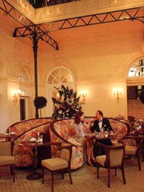 Прихожая с центральной лестницей и потолками с фресками ведет к элегантному большому вестибюлю с венским кафе. Достопримечательность отеля - бельэтаж (Bel Etage). Это этаж, стены и потолки которого украшены картинами старых мастеров.