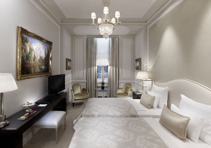 Интерьеры номеров, созданные известным дизайнером Пьером-Ив Рошоном, воссоздают утонченную роскошь классического стиля и аристократическую атмосферу имперской эпохи. Из окон номеров открывается чудесный вид на Вену.