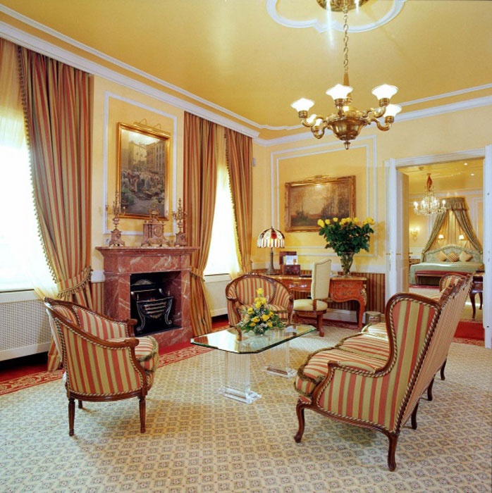 Junior Suite (50-70 кв.м.) - светлые просторные номера, визуально разделенные на спальню и гостиную, с эксклюзивной отделкой стен, а некоторые - и с деревянными паркетными полами, роскошные мраморные ванные являются элегантным дополнением к интерьеру.