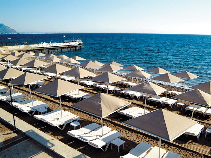 в Бельдиби, на самом берегу моря, в 15 км от центра города Кемер, в 25 км от центра города Анталии, в 35 км от аэропорта Анталия.