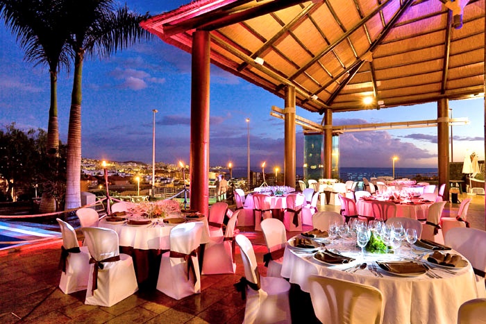 на возвышенности, напротив пляжа Эль-Дуке, в 22 км от аэропорта Тенерифе.