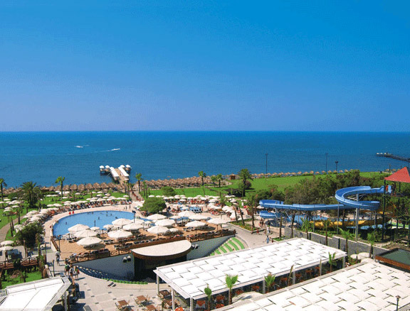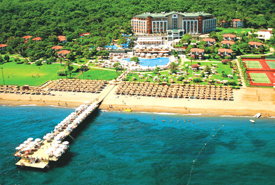 | Я туда ездил с женой и ребенком 4,5 года 16-23 августа 2006г. Скажу, что в целом мы не пожалели, что выбрали этот отель: территория, питание, пляж, отношение персонала, горки, множество баров, детский клуб - все на хорошем уровне! Было несколько неприятных моментов, которые, к сожаленью, на мой взгляд, неизбежны в любом отеле: 1. При поселении в отель нам так сильно помогал представитель Пегас Туристик Георгий, что даже не дал мне приблизиться к ресепшин. С одной стороны это хорошо и приятно, но в результате я не смог замаслить администратора и получил номер почти в самом далеком бунгало, вместо номера в основном здании отеля, о чем просил побеспокоиться Георгия (не бесплатно естественно). Следующее за нашим бунгало было как раз с видом на мусорку, наше смотрело на забор :-(( Когда я спросил у Георгия, почему же он не предложил денег администратору, он ответил, что я должен был договариваться сам…...но он готов постараться помочь....после того как я определюсь с экскурсиями!!! В результате я с удовольствием послал все его услуги подальше и решил не ходить и не тратить нервы, время и деньги на мнимый комфорт, т.к. в номере всё работало исправно, а это главное!!! Всё равно я уходил из номера около 9 утра, а приходил только в 6 вечера, чтобы переодеться и снова уйти до 12 ночи. На что смотрели окна не принципиально, просто неприятно. 2. Однажды, оставив полотенца на лежаках и удалившись в ресторан, вернувшись я обнаружил на своем месте Турка с семьей!!! Он клялся, что лежак был не занят (в тот день был ветер и он парировал, что мои вещи просто улетели, хотя где делось мое полотенце всё-таки непонятно). В общем, он ни бельмеса не понимал ни по-русски, ни по-английски. Я вызвал Security, а они позвали Guest Relation. Однако не закончилось это абсолютно ничем: нам мило по улыбались, попросили, чтобы мы пожали руки, турок остался не прежнем месте, а мне предоставили другой лежак рядом, пообещав через минуту принести полотенце взамен.....полотенце так и не принесли :-(( Пол дня отдыха было испорчено! 3. Я начитался отзывов, что лучше давать чаевые хоть иногда, чтобы сервис был качественнее, поэтому оставлял по доллару через день за уборку номера, а в ресторанах я так и не понял прикола чаевых: официанты денег не берут, а если хочешь оставить деньги, нужно бросать их в специальный ящик при выходе. Вопрос: зачем их бросать в урну, если все равно никто не смотрит, бросил ты или нет.....мифы о том, что немцы дают чаевые и поэтому их лучше обслуживают - это только мифы: ни немцы, ни итальянцы не толпились возле этих Tip Box!!! Вообще ни разу не видел, чтобы туда кто-нибудь хоть что-то бросил. Уборщица, видимо в благодарность за чаевые, на третий день выбросила мою бутылку со спиртом (пол-литровая бутылочка из-под воды), который я всегда беру в случае необходимости обработать рану. Наверное, она подумала, что там недопитая вода. Когда я ее пытался спросить об этом, она вообще ничего не поняла, зато очень мило улыбалась :-)))))) 4. Турков и немцев действительно обслуживают в первую очередь, но объяснение этому я вижу не в расовой принадлежности, а просто во врожденной наглости .........и знании что как называется в барах :-)) Они подходят к стойке и, не обращая внимания на очередь (2 человека) громко и внятно называют, чего хотят. Официанты, выполняя предыдущий заказ, сразу наливают и то, что услышали, а уже потом спрашивают, что х