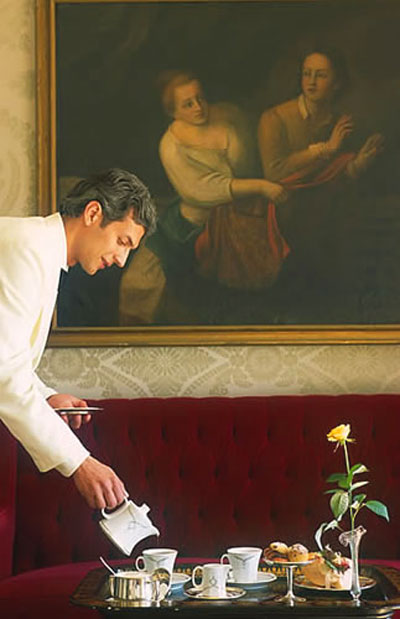 стиль бидермейер, картины и натуральные материалы. Каждый номер, отличаясь от других цветом шелков и парчи, создает у наших гостей ощущение исключительной элегантности.