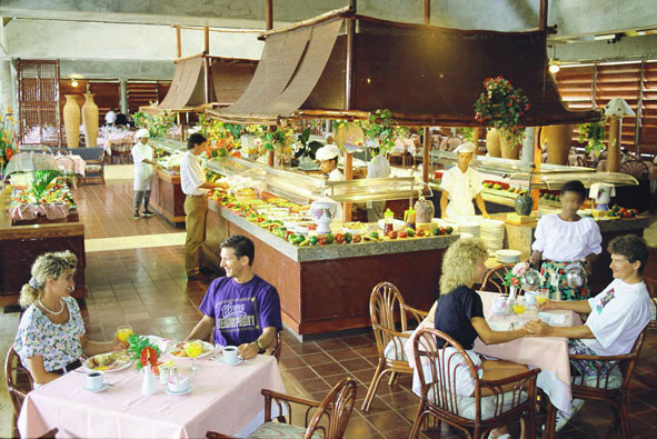 Минусы: Еда вкусная, но однообразная, особенно завтрак - каждый день одна и таже еда. Самый большой минус - это жуткие номера с колоннами, из-за которых невозможно лежа на кровати, смотреть телевизор.Дверь в туалет из полупрозрачного стекла и не закрывается, т.к. замка нет. Мебель древняя деревянная.Из-за большой влажности - затхлый запах. Ремонт в номерах давно не делался. Уборка номера плохая, несмотря на чаевые. Мы заплатили 100$, и уговорили переселить нас в другой номер с джакузи. Правда, им мы почти не пользовались.Кондиционер работал плохо: было то холодно, то душно. В номере, можно сказать, нет окон, так как они являлись входной дверью и находились напротив кровати. Номера все почти одинаковые по планировке; отличаются только расположением ТВ и наличием джакузи.Они располагаются в бунгало (в каждом по 2 этажа и 8 номеров). В главном корпусе номеров нет.