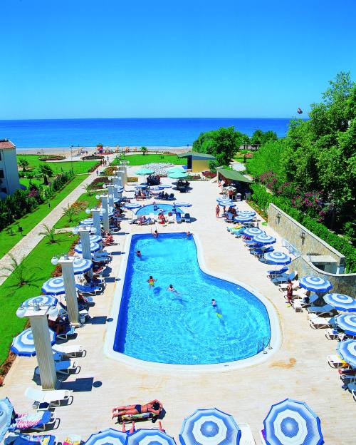 | Привет!!! 3 дня назад прилетела из Турции, жила в отеле! Очень грустно, хочется обратно. Там остался человек, который мне очень понравился, он наверно еще пока работает там аниматором. Мы провели вместе мало времени, но его я запомню на всю жизнь. Если бы быда возможность и жизнь повернулась по другому, мы бы составили прекрасную пару. Я так думаю, может я и не права. Наверно из-за него так грустно. иногда плачу. Так вот, об отеле. В общем там мне понравилось, но мало молодежи. В основном все семейные, хотя я не ехала в Турцию за романом. Просто общаться иногда было нескем. Когда познакомились с ребятами, стало веселее. Заколебал банщик-массажист по имени Седат, если девушке признается в любви, держитесь. До конца отдыха будет за вами ходить и предлагать секс с зажигательным турком, т.е. с ним. Может пустить сплетни, еще он женат. Понравилось как кормили, я даже за 12 дней похудела на 5 кг. Много овощей, салатов. Мало давали мясо, хотя в Турции в основном во всех отелях так. Мясо там дорогое. В основном нам давали курицу,рыбу и турецкие прянные котлетки. Вкусные были сладости и торты. Персонал хороший за исключением некоторых экземпляров, которые после того как с ними поздароваешься, предлагают на пляж сходить. Номера уютные, но нет шампуня, геля для душа и мыло жидкое невкусно пахнет. Пришлось купить там мыло и мочалки чтобы мыться. Фен дует горячим воздухом, да и при высокой влажности сушить волосы феном невозможно. Платно услуги прачечной и гладильной. Чтобы погладить юбку нужно заплатить 1 евро. Еще мы с сестренкой (ездили вдвоем) лоханулись с поездками на экскурсии с Тез Тур. Цены завышены абалденно, возят только в свои магазины, где все в 3 раза дороже, чем в лавке на рынке. Так что ничего там (т.е. в магазинах от Тез Тур) не берите. Лучше съездить на автобусе в Аланью за 2,5 доллара и гулять там весь день, и накупить дешевых сувениров или одежды. Дешевле купить экскурсию можно или на пляже, там постоянно сидит парень. Или выйти за территорию отеля. Через дорогу чуть левее есть рынок, там продают путевки на экскурсии. Снова про отель. Понравился бассейн и горки. Пляж в основном галечный, песок есть только возле шезлонгов. Зонтики слабенькие. Если хотите полежать в тени, придется перетаскивать шезлонг за тенью. Шоу там средние, т.к. хозяин отеля все сцеки и программы отбирает сам. Видимо с юмором у дерика туго, турецкий юмор, что и говорить. Зато детям там раздолье, все в восторге. Носятся туда-сюда, пищат, плавают. Диско им устраивают, они там танцуют. Для взрослых там тоже есть диско, но туда мало кто ходит. Если с компанией, то там здорово тусить. Отдыхать конечно всегда здорово, но мало. Впечатления в общем об отеле положительные. Но есть недочеты, можно что-то сделать лучше. Не бывает идеально везде. У каждого свои запросы. Если ехать с положительным настроем, то и отдых будет клевым. Если искать недостатки, то и настроение и отдых будет дурацким. Народ в основном русский. Мало немцев. Были поляки, чехи, голландцы, сами турки там тоже отдыхают, но таковых мало, по 2-3 семььи. Отель небольшой, но уютный народ в лицо запоминаешь. Мне больше нравится так, чем в здоровом отеле, где никто никого не знает. Клевый парень работает на ресепшене - Фархат. Веселый такой и порядочный. Мы с ним так подружились, болтали всегда. Он хорошо по русски говорит. Не турок, вот и порядочный. Ещ