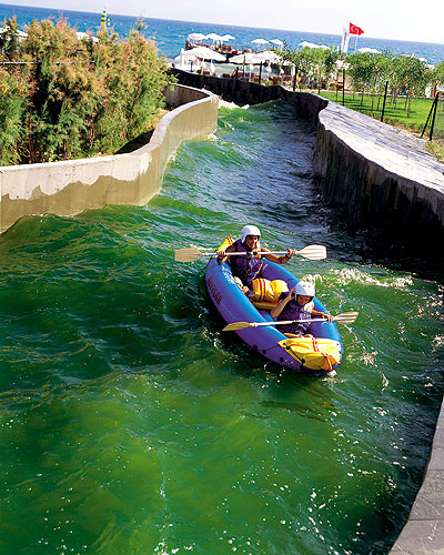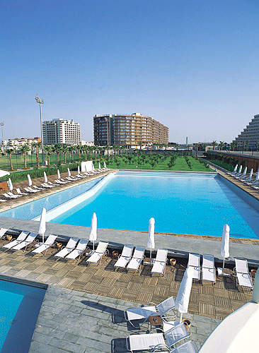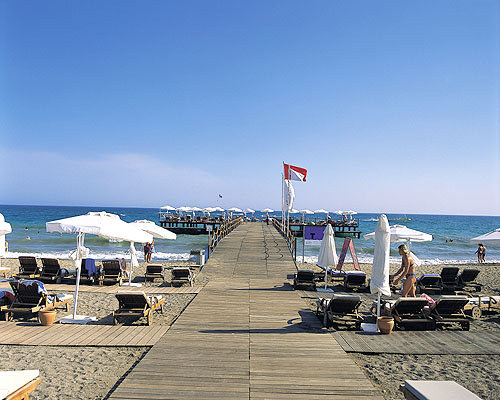 | Отель очень понравился! Неделю назад приехали из Турции с мужем. Оба были в полном воссторге. Выбирали отель долго, по интернету. Нам очень понравился стиль, в котором построен и оформлен отель (Хай-Тек). Все очень современно стильно, ничего лишнего. Не знаю как в прошлом году, в этом недостроек почти нет, а если что и очталось этого не слышно и не видно. В отели все для людей все лдя отдыха, турки стараются как могут. Если и есть недостатки , то во многом виноваты сами туристы, которые носят еду, вино, фрукты в номер, все проливают на белый ковер, а потом жалуются, что ковер у них с пятнами. Открывают бутылки о дверцы и т. д. Лежаков на пляже может не хватить только потому, что туристы рано утром полотенца кинут на лежак, а сами приходят после обеда, а другие люди вынуждены ходить вдоль "занятых" мест. Утром на шекарном пляже с очень удобными лежаками и зонтиками, в жаркое время можно пойти в оздоровительно-спортивный комплекс. Муж в тренажерный зал, я в сауну, турецкую сауну, джакузи. Дальше поплавать в крытом бассейне. И купаешься, и не сгоришь на активном солнце.Если чего еще желаете, у бассейнов целый день развлечения: водные игры, аэробика, водная аэробика, степ, танец живота, шейпинг. Работают водные горки. По поводу еды отдельный разговор. Кормят с 7 утра и до 1 ночи.Где бы ты на территории не находился, везде тебя найдет еда: в самом отеле, на прляже, около бассейнов. Все очень вкусно всего попробовать не успели. Мяса много, салатов много, о сладком я молчу. Пять столов торкиков, пахлавы, халвы, пироженных и еще, еще еще много. Кто хоть немного любит сладкое пройти мимо не сможет. Самый разнообразный ужин: помимо щведского стола, где из горячего может быть 3-4 вида (баранина, кура, индейка, язык, рыба,говядина, сосиски, катлетки, шашлычки, грибы...) 33 салата, 133 сладости, еще на улице каждый день жарят барбикю. Это может быть просто мясо ломтями, цельный барашек, цельный тунец, кура-гриль, рыбка, грудки... Объедались как ненормальные (девушки осторожно, я поправилась за 7 дней на 2,5 кг., сейчас на диете :-))). Если с барменами общаешся как с нормальными людьми, улыбаешся спокойно ждешь, то и они будут для вас очень стораться. Подружились с Барменом Месутом, очень рекомендуем, делает класные коктелим, дает фисташки, фундук, наливает наомально, и даже чаевые не любит, говорит любит русских. Каждый может увидель этот отель в своем свете. Если ты стортивный человек бери с собой ракетки для тениса и играй, футбольное поле, стрельба из лука, воллейбол, баскетбол, фитнес, плаванье. Если тебе хочется гулять и пить Лоби-бар 24 часа нилавают. Хочешь объедаться-пожалуйста. Встречали молодых людей на охоте за девушками, они тоже все себе нашли ходили довольные и счастливые. Каждый вечер анимация 21,45-10,45 бывало очень даже интересно. с 23,00 дискотека. Нам очень понравилась живая музыка на пляже: женщина и мужлина под гитарку с аранжировкеой пели очень и очень душевно. Если задуматься, и для порядку, скажем о недостатках. Вы можете бесплатно посетить 3 ресторана в отели: мексиканский, восточный и итальянский. Комят там никак, все красиво оформят с пафосом подадут и все. Мы туда ходили просто сменить обстановку и посмеятся над суши с огурцом. Но основная еда такая хорошая, что это ерунда. Когда обед или ужин в реторане очень много народу и можно минут 5 ждать официанта чтобы принес приборы 