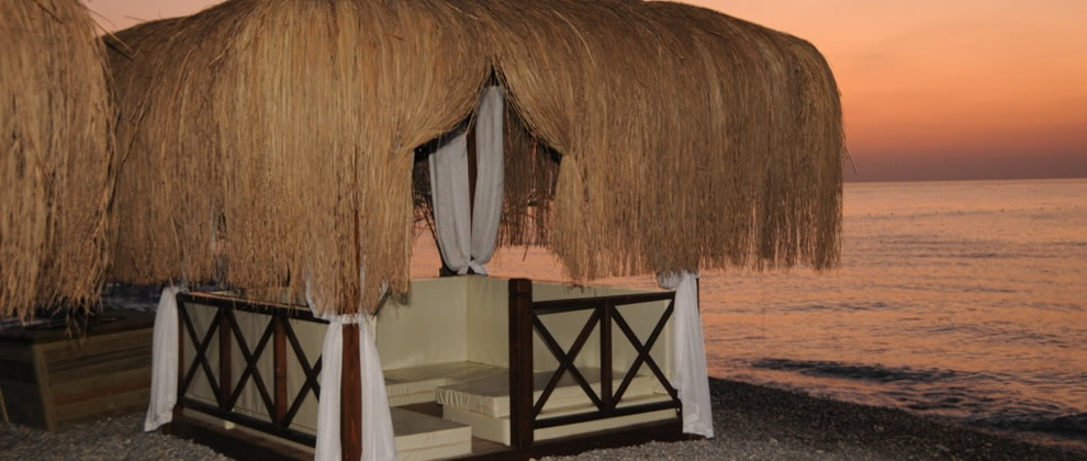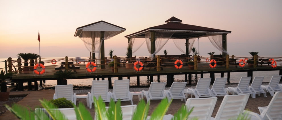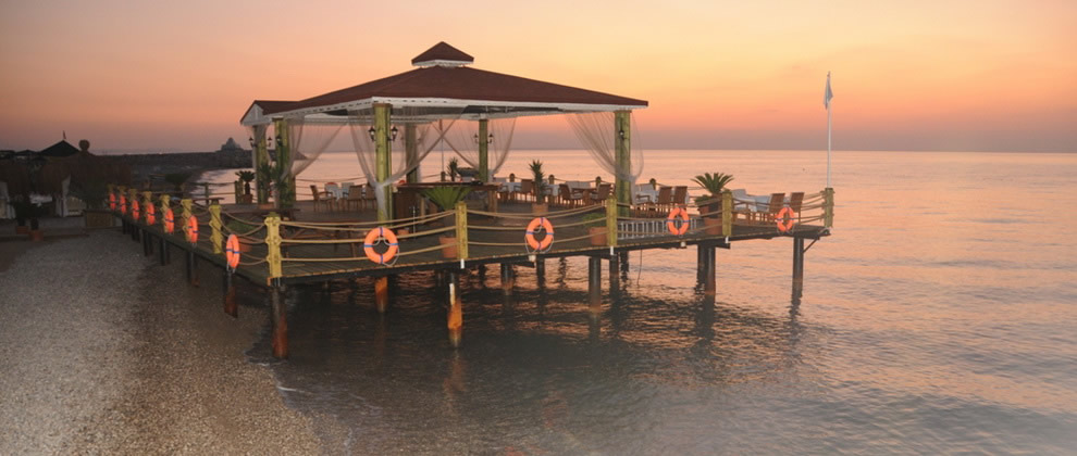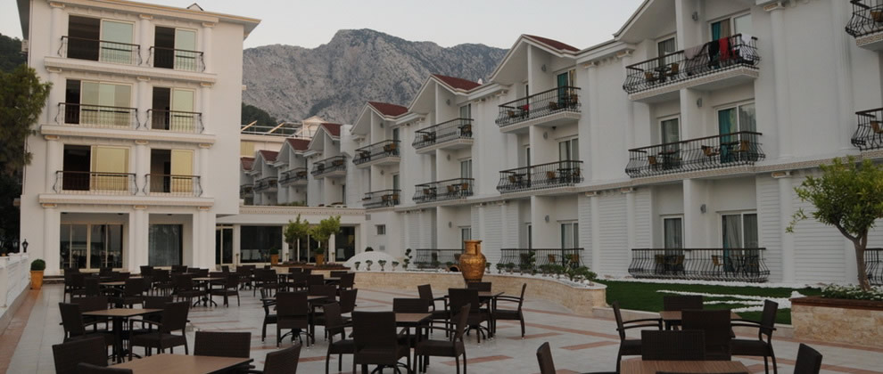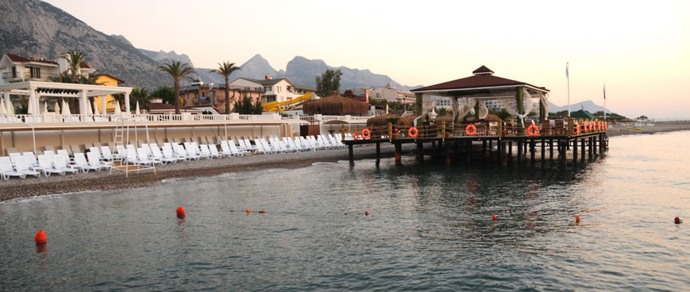 в 45 км от аэропорта г. Анталия и в 10 км от г. Кемер, в пос. Бельдиби, на самом берегу моря.