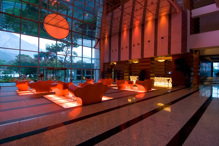 | В общем отель неплохой: огромная, идеально чистая территория, большие, хорошо оборудованные номера, отличный сервис, все служащие очень доброжелательны, разнообразные развлекаловки и для детей, и для взрослых: пинг-понг, теннисные корты, шикарный аквапарк, детский бассейн с разными горками, детская площадка с батутом, горками, домиками просто находится в сосновом лесу, боулинг, анимация (в те дни, когда она была) - на очень высоком уровне. Но: было пару недостатков, на мой взгляд, очень существенных. Так как мы ехали в сезон, когда уже не очень жарко, мы искали отель, в котором есть бассейны с подогревом. На сайте отеля была информация о том, что такие бассейны в СанГейте есть, но мы все-таки позвонили в отель уточнить. По телефону нам сообщили, что внутренние бассейны подогреваются всегда, и есть еще несколько наружных, которые подогреваются "по требованию". С этим мы и приехали, и обнаружили, что в обычных бассейнах вода ледяная (19 градусов), ни один человек не купается. Это было ожидаемо, но мы не нашли ни одного подогреваемого бассейна, кроме того, джакузи и возле бассейнов, и в хваленом сангейтовском спа тоже ледяные. Для нас это было просто шоком: во всем спа теплая вода была только в кранах в хамаме!!! Несколько дней ушло на нервотрепку и разбирательство с GuestService, которые 3 дня кормили нас обещаниями, что воду вот-вот подогреют, а потом прямо сказали, что это слишком дорого, и воду греют только в зимний сезон, с 31 октября. Детям там вообще мало чем было заниматься, в бассейны заходить было абсолютно невозможно! В море вода была теплее, но пляж с жуткими камнями, несколько человек при нас серьезно поранились. Следующее: несмотря на огромное количество еды, детям там, по большому счету, есть было нечего: еда была или для совсем маленьких (всякие молочные каши), или для взрослых, все с соусами. Блюда, которые стояли на подогреве, например, спагетти, всегда были почти холодными. Дети питались там в пиццерии. И третье: анимация. Во-первых, плохо поставлена информация о вечерних представлениях и вообще о том, что есть в отеле. Например, мы совершенно случайно узнали о том, что в одном из баров каждый вечер играют джаз. И во-вторых, были просто пустые вечера, например, в один из дней везде, во всех барах и кинотеaтрах показывали футбольный матч |