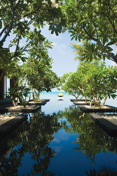 Отель состоит из 124 вилл, большая часть из которых расположена на берегу океана и укрыта тропическим садом. Другие же виллы стоят в воде на сваях и связаны с берегом посредством деревянных мостиков.