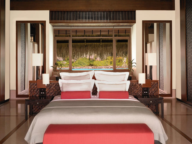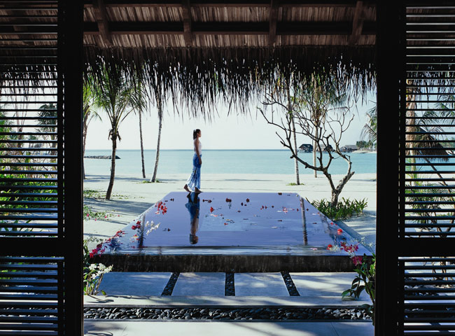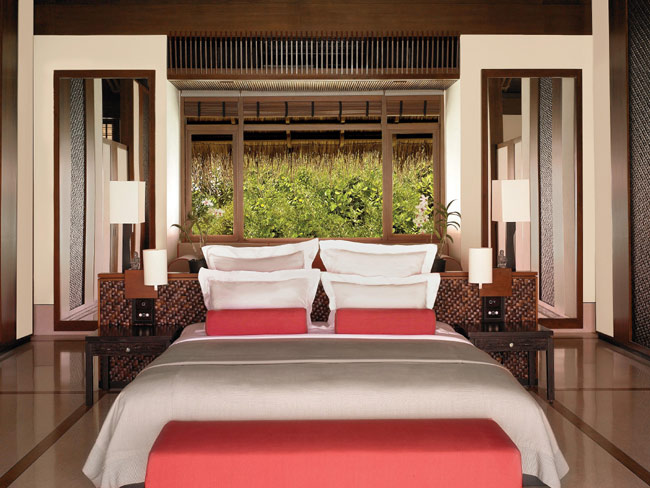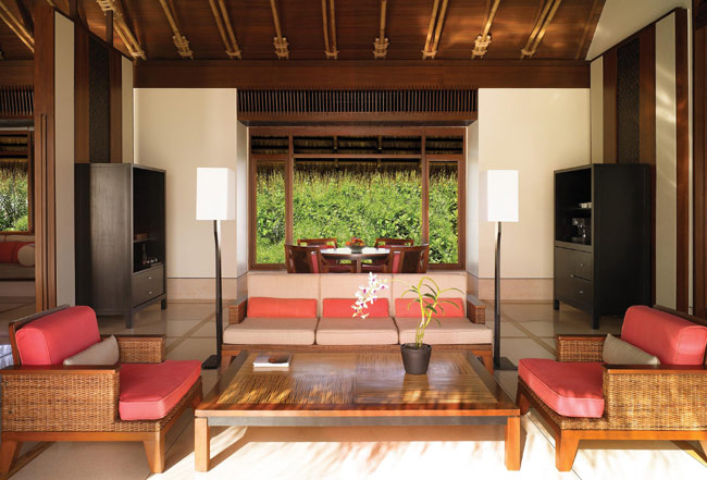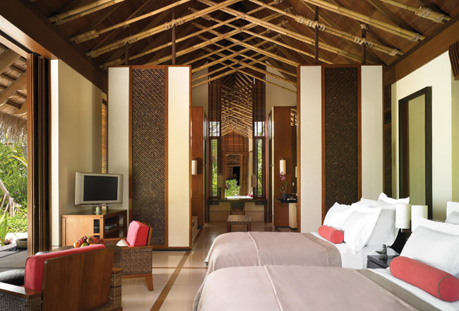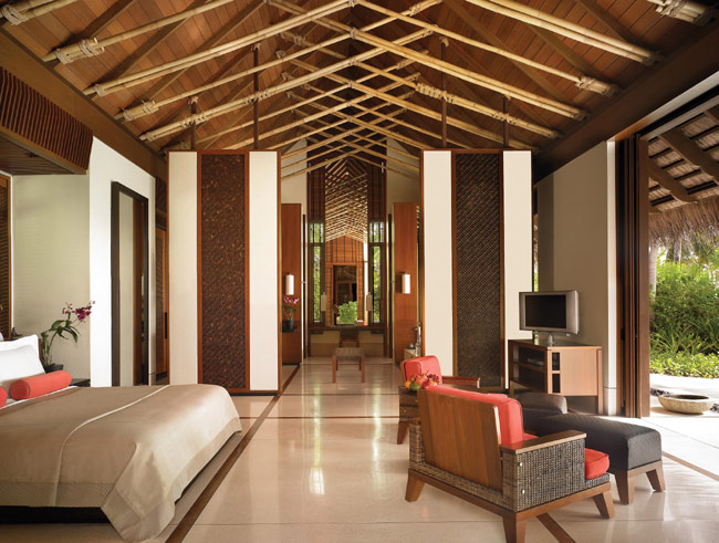 Пространство виллы организовано таким образом, что даже лежа на постели можно любоваться видом на море и частный пляж. Номер визуально поделен на спальную зону с двуспальной кроватью, гостиную зону с креслами и зону, где расположена ванна. К услугам гостей выходящая на сторону пляжа веранда (26 кв.м) с шезлонгом, столом и зоной отдыха. Кроме того, к услугам гостей виллы душ на открытом воздухе и персональный бассейн, окруженный тропическим садом.