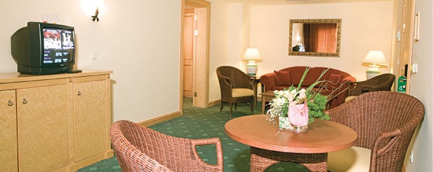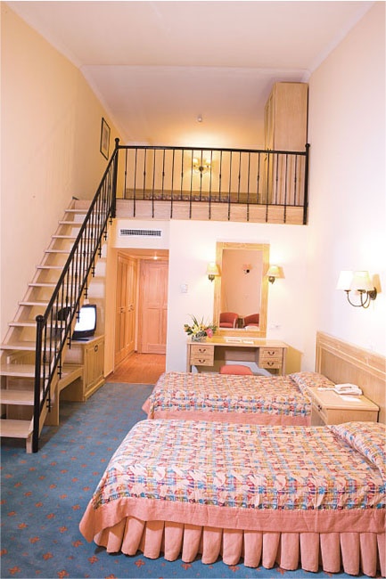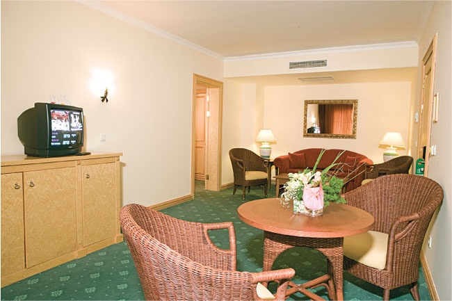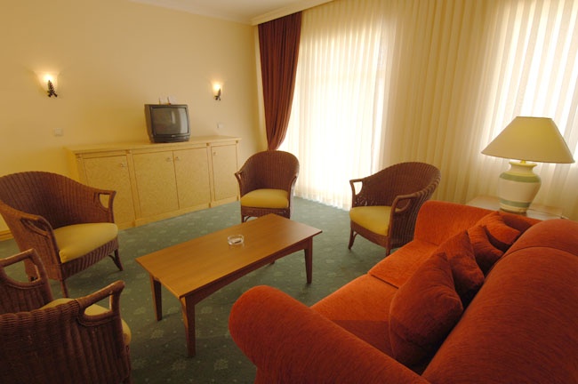 10 Junior Suites (55 кв. м) - расположены в основном здании. Одна спальня с двухместной кроватью или с двумя одноместными, гостиная с диваном, одна ванная комната. Максимальное размещение 4 человека. Покрытие пола ковер.