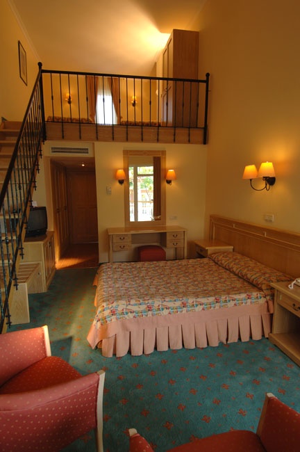 5 Apart Rooms (55-60 кв. м) - двухкомнатные номера с балконом, в одной комнате двухместная кровать, во второй две одноместные. Номера расположены в Apart блоке. Есть межкомнатная дверь. В ванной комнате ванна со шторкой. Покрытие пола ковер. Максимальное размещение 5 человек. Мини-бар (платно), сейф.