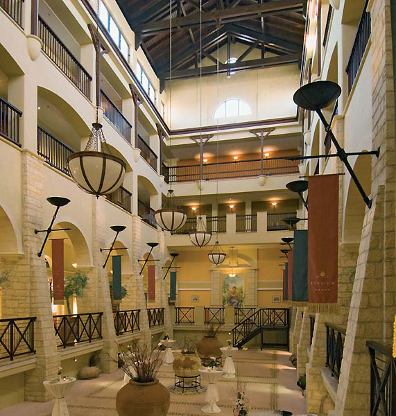 Отель Elysium больше напоминает рыцарский замок, нежели современное здание. Венецианский стиль, таинственная атмосфера... С людной улицы попадаешь в просторные коридоры, стилизованные под средневековье. Стены украшены дивными фресками, на полу фрагменты "сохранившейся" с древних времен искусной мозаики.