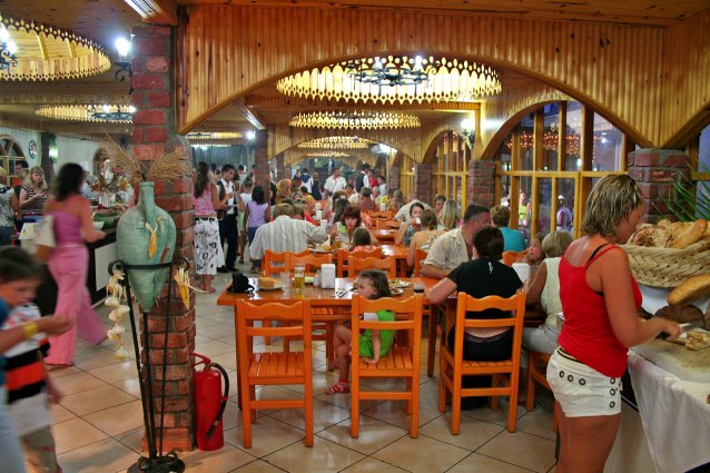 | Не могу не поделиться впечатлениями от отдыха в отеле Club Belpinar. Заявляется, что у отеля 4 звезды, однако, по-моему, он вполне сравним с 2* в Европе, только с гораздо худшим к гостям отношением. Мы были в отеле с 12 по 20 июня 2009 г. При заселении нас, как полагается, по уже сформировавшейся традиции, постарались заселить в сырой вонючий номер, через 1 метр от балкона которого была глухая стена. Такой своеобразный вид «на стену», за который мы, видимо, и заплатили. Вопрос решили 20 долларов и моя настойчивость. После ворчания на тему, что, мол, нет свободных номеров, мне было предоставлено на выбор еще 2 номера, один из которых оказался более-менее ничего. Вид на море нам заменил вид на бассейн, потому, как вид на море присутствует в лучшем случае в 5 % номеров отеля. Получив более-менее приличный номер, стали в нем обживаться. Оказалось, что нормальных шкафов с полками нет в принципе, куда класть вещи непонятно. В огромном шкафу с палкой было всего 2 вешалки, для чего было остальное пространство, так и осталось загадкой. В результате вещи пришлось просто свалить кучей на тумбочки и так жить. Душ оказался также с сюрпризом. Он просто прикручен высоко к стене и полностью исключает возможность помыться, не намочив голову. Шапочки не предусмотрены, как, впрочем и шампунь. При этом каждый поход в душ начинался с окатывания холодной водой, т.к. он не снимается. Наверное, это чтобы туристы закалялись. На балконе не было ни сушилок, ни хотя бы веревок для того, чтобы сушить белье и полотенца. И если полотенца еще можно было повесить на перила балкона (откуда их сдувало периодически), то купальники приходилось сушить, разложив на стульях. Еще в номере не работали 2 розетки из 3, но это устранили на следующий день, причем, что приятно удивило, не попробовали вымогать деньги, а от предложенных чаевых отказались. Холодильник тоже не работал, его долго чинили, в результате мы стали его называть «шкаф, который не греет», т.к. внутри его пластина была немного прохладная, но и только. Что касается еды – это отдельная тема. Благодаря «вкусной» еде нам удалось не только не поправиться, но даже похудеть, что, как я раньше думала, в отпуске в принципе невозможно. Итак, топ-лист блюд, рекомендованных к употреблению: 1. Пиво – вполне пристойное. 2. Coca-cola – везде одинаковая. 3. Минеральная вода – когда сушняк употреблять можно.  4. Из питания ходить только на завтрак. Есть можно хлеб и омлет. 5. На этом список съедобного заканчивается. 6. P.S. Один раз были просто вареные макароны с паровыми овощами, это был просто пир! Очень хорошо прослеживалась такая тенденция, что не съели на завтрак, будет в салатах в обед и ужин. Мяса не давали нормального, все ужасного вида и в столовой ужасно пахло. В общем, мы ходили туда только за пивом, когда закрывали пляжный бар, а питались в ресторанах города. Бармены в отеле – отдельная тема. В лобби-баре работал бармен, который так и не смог объяснить, почему нельзя налить колу в большой стакан, и просто стал нас игнорировать , наливая колу в маленькие стаканы. А мы его немного изводили этой просьбой просто из принципа. Вообще о гостях тут заботятся. Чтобы те не дай Бог не проспали, у бассейна уборщики в 6 утра начинают громко двигать пластиковую мебель, громко при этом переговариваясь. Горничные долбят шкафами тоже часов с 6 утра и никаких свирепых просьб не понимают