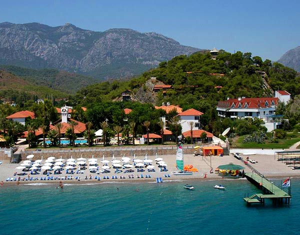 в курортном районе Чамьюва, на берегу моря, в 65 км от аэропорта Анталии, в 55 км от центра Анталии и 7 км от центра Кемера