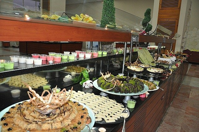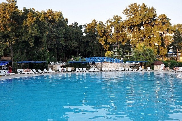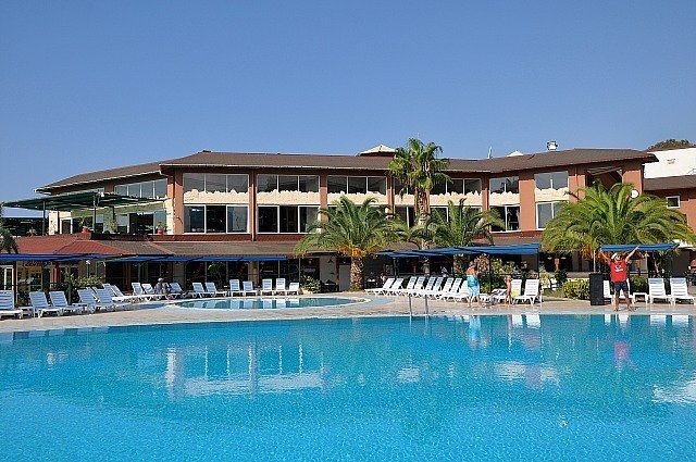 Отдыхала в сентябре с двумя подругами.Понравилось(мы же отдыхать приехали).То есть отдохнули отлично, а что касается самого отеля,то сюда больше не поедем. Ресепшен ужасен.С перевого взгляда разочаровал.Заселили в маленкую комнатку с тремя кроватями, но чистую.Полотенца исправно меняли и в номере убирали.Только вот постельное белье ни разу не поменяли.Фиг с ней с комнатой.Там же только спать.Пляж как пляж ничего особенного. Не чистый, не грязный.Заход в море ужасен.Булыжники.Но море супер.Правда штормило и много грязи приплывало.Зато глубина очень далеко начинается.За шейзлонги не дралися, в шесть утра не вставали.На троих всегда находили.Полотенца оставляли, а сами кушать уходили.Никто не занимал. Кормили намана(Подруга даже в весе прибавила).Нам ,девчонкам, как раз, то что нужно. Мяса нет практически, тока курица.Очень много вкусной выпечки.Совсем нет фруктов-это большой минус.Тока бахчевые арбузы и дыни-тыквы.Соков тоже не было-юпи разбавленное водой. А вот в хамам не стоит ходить-ужас.Просто ужас.Грязно, плохо пахнет.Тока и думала када все закончится.Даже описывать не хочется. Территория вся в зелени-это плюс.Бассейны чистые-здорова. Персонал довольно милый. В общем, если от отеля ничего не ждете, то отдохнуть тут намана.А вот кто загоняется по такому,то уж точно ищите что-нибудь другое. |