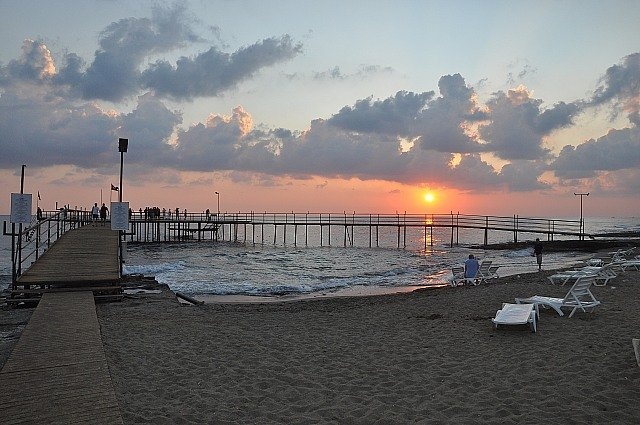 | Все отзывы по этому отелю верны. Хотелось бы немного добавить. Возможно это кому то поможет. Отдых понравился. Кормили наубой. На обед и ужин 3-4 вида мяса и за 7 дней ни разу не повторялось. То так обжарят мясо, то по другому, то рыба.. Объелись. Для Турции и Египта питание 5+. Правда из фруктов только арбузы и апельсины. Территория 5+. Анимация вроде неплохо зажигала. Дискотека – это действительно дискотека, где все танцуют и зажигают, а не 2-3 пляшущих чела. Номера средние, меньше 20 баксов не давайте если хотите новый корпус. Мы сначала дали 10, так нас заселили в старый корпус рядом с релакс бассейном. Этот «релакс» только так называется. На самом деле там купаются постоянно дети… визг стоит…. Детей кстати в отеле очень много. Около главного бассейна музыка постоянно, но много турок. Если вы едите первым делом поплавать вдоволь, то вам не сюда. Постоянные волны, из-за этого вода постоянно мутная, с водорослями. Порезвиться бы в этих волнах с берега, да там камни одни, с пирса лесенки не очень удобные, да и с волнами бороться устаешь… Мы потом круг купили. Песок действительно в окурках и стаканах, но это уже скорее отдыхающих винить нужно. Алкоголь дают на руки только два стакана, а стаканы эти маленькие пластиковые… мужчине два глотка… не удобно жутко. Дерут конечно там за все подряд… поставили кукурузу – 2$, мороженое - 1$, за отелем такси до Конаклы (2 км) 8$. И где они такие цены нашли… А в остальном туса, позитив, солнце, отпуск)))) |