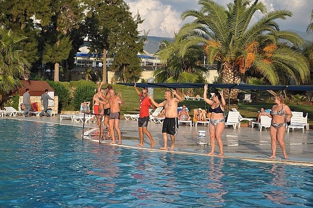 Всем привет! В Турцию я летала первый раз. Два дня как вернулись с мужем из отпуска. И впечатления самые приятные и теплые!!! Купили тур, перед отъездом начитались отзывов, и пришли в ужас!!! Даже думали отказаться от поездки. Но когда приехали в отель, сразу стало ясно что все не так уж плохо. Территория огромная, ухоженная, море зелени, пальм, 3 бассейна, 3 водные горки, детская площадка, хамам с баней, и сауна, тренажёрная площадка, 3 детских бассейна, полно лежаков. Большой пляж с лежаками и зонтиками. На нем всегда можно найти свободное место. Поселение в отель проходит по международным правилам, то есть после 14.00. Поэтому пришлось немного подождать. Номер нам достался в 4 корпусе (4312), это один из старых корпусов, но достаточно уютный. Расположен недалеко от моря, близко к главному ресторану, близко к бассейну с горками))) и далеко от дискотеки, поэтому ночью тихо. В номере было все необходимое для жизни, гардеробная комната, кондиционер, холодильник, телевизор, горячая и холодная вода. Выглядел достаточно уютно, но без шика. Полотенца меняли раз в три дня. Номер убирали не каждый день. Но если дать уборщице 1 доллар или 2 и попросить убрать, так вам еще и бабочек из покрывал сделают))). Пляж. На самом деле вход в море слегка неудобный, каменистый берег с валунами, для маленьких деток даже опасный. Но для взрослых вполне нормально. Можно заходить в море с пирса. Никаких огромных очередин нет. Когда смотришь с пирса в море, видно его дно. Вода чистая как слеза. Видно стайки проплывающих рыбешек. Море - парное молоко. Еда. Как по мне достаточно разнообразная и вкусная. Было мясо (курица, телятина, баранина) и рыба жаренная (просто объедение). Разные сыры. Море овощей и зелени. Из фруктов давали арбузы, сливы, апельсины, виноград, персики. Огромное количество сладостей))) В перерыве между основными приемами пищи на баре дают гамбургеры, пиццу, печеньки, и одна женщина печет национальные "хачапури" с мясом, сыром, зеленью. Просто объедение. Целый день на 3 барах без ограничений кола, спрайт, фанта, безалкогольное пиво, чай, кофе, айран, просто вода и юппи. Анимация. Супер - фаершоу на пляже + пляжная вечеринка, вечер национальных танцев, пенные дискотеки, на протяжении дня, игры и конкурсы у бассейна, волейбол, футбол, водное полло, оквааэробика и т.д. Аниматоры очень приятные и позитивные. На территории отеля есть мед пункт. Я простудилась, по страховому полюсу мне оказали первую помощь, выдали терафлю, средство полоскать горло. Абсолютно бесплатно. Отель соответствует 4*. Я бы даже сказала 4+. Не стоит ожидать что над вами будут махать опахалами, и официанты будут подавать прохладительные напитки по вашему зову. В номерах будет дизайнерский интерьер. Но все необходимое для нормального полноценного отдыха в этом отеле есть. Тем более по минимальной цене отличному соотношению цена-качество. |