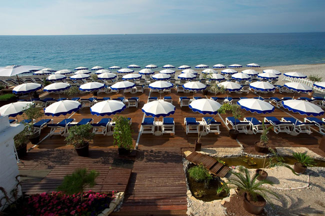 Пляж: частный пляж с пляжным оборудованием (шезлонги, зонты, пляжные полотенца), открыт с апреля по сентябрь.