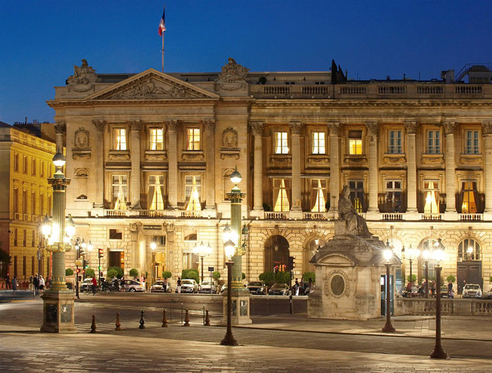 Своим гостям он дарит незабываемую встречу с уникальным миром красоты, искусства, гастрономии и абсолютного комфорта. Величественное здание отеля представляет собой великолепный образец архитектуры XVIII века, построенный знаменитым архитектором Жак-Анж Габриелем в ансамбле с одной из самых больших и красивых площадей Парижа - площадью Согласия. Изысканные интерьеры, уютная атмосфера частной резиденции, безупречный сервис, превосходное месторасположение, чарующий вид на площадь Согласия и элегантный внутренний дворик покоряют самого взыскательного клиента.