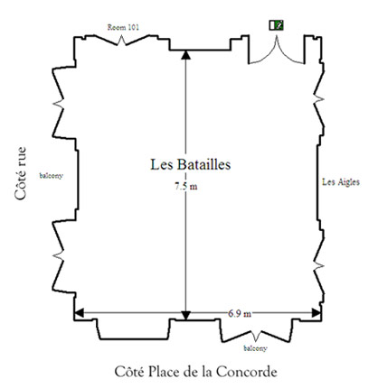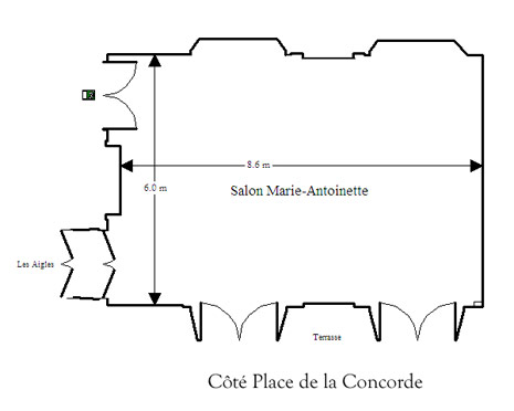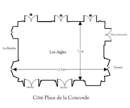Aigles (Орлиный зал) (89 кв. м), знаменитый своим потолком, расписанным позолоченными орлами и медальонами в стиле Wedgwood