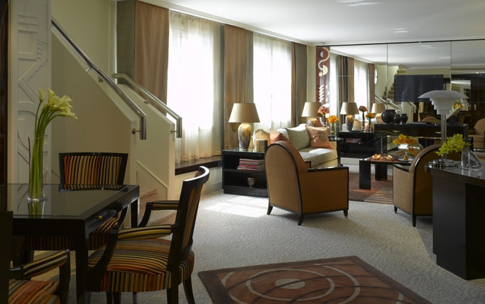 Deluxe Junior Suite (от 55 кв. м) — оформлены в стиле Ар Деко или эпохи Людовика XVI. Декоративные объекты и такие приятные подушки, обшитые тафтой и бархатом и вышитые золотом, придают номеру настоящую индивидуальность и сходство с жильем коренного парижанина. Состоят из спальни, мини-гостиной с софой, креслами и письменным столом, и ванной комнаты; в некоторых номерах – гостевая ванная комната. Максимальное размещение – 3 человека (кровать "queen-size", "king-size" или одиночные). Вид на открытый внутренний дворик. Возможность объединения: с номером Superior.