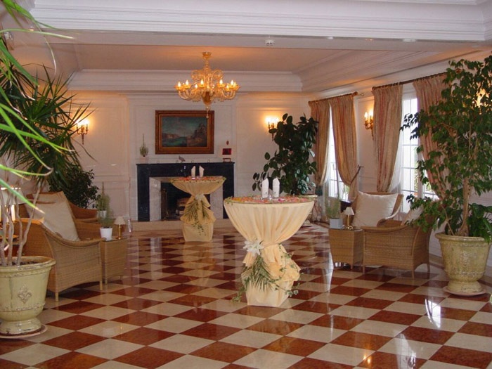Элегантный силуэт отеля с террасами и широкими лестницами, черепичной крышей, белоснежными балюстрадами и стенами цвета мимозы эффектно смотрится между синевой неба и лазурью моря. Великолепие правильных геометрических линий и классический шарм оттеняет пышная зелень окружающей сосновой рощи. Неоспоримое очарование южной Франции и идиллическая панорама, открывающаяся из окон, получают свое гармоничное продолжение в декоре комнат, использующем традиционные для этого региона ткани с яркими традиционными орнаментами. Выступающие с ними в одном стройном ансамбле изящная мебель, мягкие ковры, живописные полотна и броские цветочные композиции создают аристократическую атмосферу загородного дома, поражая гостей необычайным уютом и особенной красотой.