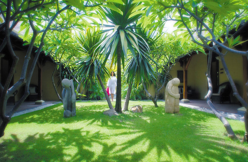 SPA-центр "Clarins" с выложенной из мелкой гальки изящной тропинкой под кокосовыми деревьями приглашает Вас погрузиться в блаженный мир красоты и гармонии с собой. SPA-центр имеет 2 входа: один ведет в зону процедурных кабинетов, другой - в парикмахерскую и салон красоты. Процедурные комнаты соединены друг с другом и имеют общую зону для релаксации в саду в окружении миндальных деревьев. Теплые тона интерьера, декорированный цветами бассейн и статуи Будды создают пленительную атмосферу в стиле азиатских SPA-центров.