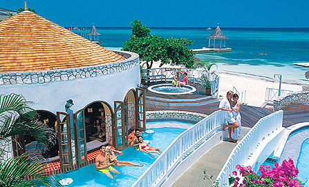 на самом большом частном пляже острова с белоснежным песком, в менее чем десяти минутах от международного Аэропорта Сангстер и курорта Сандалс Роял Джамайкан.