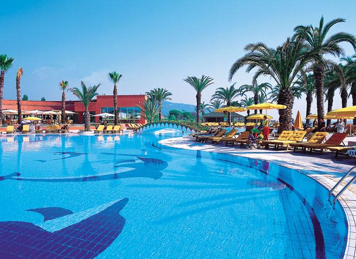 | СУПЕР! Отдыхали в этом отеле с 17.09.06 13 дней. Все было отлично! Номера очень большие, уютные. Все чисто, ежедневная уборка комнат, замена полотенец и пополнение ванных принадлежностей (шампунь, кондиционер, гель для душа)и мини-бара (по 2 бутылки воды и минералки + кола и фанта). Также бесплатный сейф в номере, что очень удобно. Что касается питания, то могу уверить даже самых привередливых, что все равно вы там что-то для себя выберете. Муж у меня дома-то не все есть будет, не то что в гостях, а уж что касается общепитов, то вообще молчу. И то все время с растегнутыми от обжорства штанами из-за стола выползал! :) Может это обусловлено еще и датами поездки, но в сентябре это просто "ПИРДУХА", вернее "пир живота и духа"! Мяса море: курица, индейка, баранина, говядина, телятина, все это запеченое, жареное, вареное, рубленое, кусками, целиком (как например барана целикового запекали)и т.д. Фрукты все-все, кроме ананасов: арбузы, дыни, персики, абрикосы, яблоки, груши, сливы, бананы, виноград разные сорта.... Ну в общем, все что пожелаешь! Также была приятно удивлена, как вкусно они готовят рыбу, потому что мне все рассказывали что в Турции ее есть невозможно. Очень даже возможно и вкусно. Особенно если она на гриле. Гриль каждый вечер делали на улице. Что касается выпечки, ваще молчу! Огромное кол-во и все вкусно. Очень здорово, что есть турецкий бар, где днем можно выпить кофе и съесть все те же сладости, так как после обеда места на них уже не хватает... Также в течение дня можно перекусить на пляже лепешками, пиццами, картошкой-фри и другими снеками. Море чистое, пляж чистый, кругом пепельницы, все убирают. В море заходить очень хорошо, галечка мелкая-мелкая. Если кинуть в море маленький кусочек хлеба, через минуту вокруг тебя будет стая маленьких рыбок! Теперь что касается бара. Напитки очень разнообразные и местного и импортного производства. Конечно не коллекционные, но очень приемлимые. Но все лучше пить чистоганом, не в коктейлях, иначе они нормальный напиток разбавляют своим ужасным "ЗУКО" и все портят. Были в рыбном А-ля-карте. Очень достойно. Особенно в конце поездки, когда постоянное обжорство в общем ресторане становится невыносимым! . Кстати, можно приехать и сразу записаться на любой день. И еще, мы везли с собой бутылку водки, ну так, на всякий пожарный. И в конце отдыха, дня за 3-4 решили уже ее кому-нибудь подарить. В этот день у бармена в баре "Дельфин" был день рождения. Ну мы ему и преподнесли презент из России. Радости было выше крыши! Все оставшиеся дни нам было спец.обслуживание: все приносили официанты, не успевали допить одни бокалы, уже новые нам тащили. Постоянно ставил нам на стол орешки с чипсами. В общем, как приедете, во все бары по бутылке и вы в шоколаде! Что касается экскурсий. Ездили Помукале. Сплошной шопинг. Слава Богу, что поехали не от отеля за 50 баксов с чел., а купили экскурсию за пределами отеля за 23 доллара на чел. Причем, чем дальше отходишь от 5* отелей, тем дешевле предлагают экскурсии. Мы ездили от GINZA Travel. Выезжаем в 5 утра, приезжаем в 11 вечера. Погулять на горе и в бассейне Клеопатры дают всего 2 часа. Все остальное - это дорога и шопинг. Считайте сами. Потом мы просто взяли машину, пусть это 50 баксов на сутки, но мы ездили куда хотели (на водопады Duden, в Фазелис(кстати тоже платный вход неоправданно дорого по 8 баксов с рыла, это без экскурсии, пр