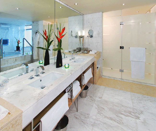 Corner Suites (90 кв. м) - расположены на очень удобных угловых площадях отеля, откуда открывается захватывающая панорама Дубая и Персидского залива. В этих номерах сочетаются привлекательность и элегантность, они имеют либо столовую, либо помещение для конференций, зону отдыха с мягкой мебелью, имеется также туалетная комната для гостей, мини-кухня и спальня с большой кроватью «кинг». В просторной отделанной мрамором ванной комнате - туалетный стол с двумя раковинами, отдельный туалет, биде, а также отдельные душевая кабина и ванна. Номера оснащены высокоскоростным беспроводным выходом в интернет, телевизорами с плоским плазменным экраном, DVD-проигрывателем, сейфом и мини-баром. Corner Suites оформлены так, чтобы отвечать потребностям и придирчивых деловых гостей и тех отдыхающих, которым необходимо уединение в узком кругу семьи или друзей. Гостям этих номеров предоставляются различные льготы и бонусы, а также доступ к бизнесс-холлу. Каждый номер рассчитан на 3 взрослых и 1 ребенка или 2 взрослых и 2 детей по количеству спальных мест