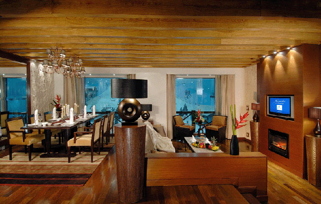Расположенный на 141 кв. м холл «Executive Lounge» предлагает неповторимый ориентированный на индивидуальные запросы сервис для гостей, проживающих в номерах Executive, Suite и шале, для полного удобства частного проживания.