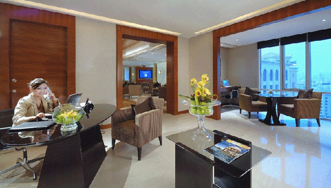Executive Suites (70 кв. м) - декорированы в современном стиле, здесь царит атмосфера жилого уюта. В номерах имеются небольшие столовые с элегантными мини-кухнями, отдельные зоны отдыха со спальными диванами и спальни с двумя типами кроватей – либо большая кровать «кинг», либо две односпальные кровати. В просторной отделанной мрамором ванной комнате - туалетным стол с двумя раковинами, отдельный туалет, биде, а также отдельные душевая кабина и ванна. Номера оснащены высокоскоростным беспроводным выходом в интернет, телевизорами с плоским плазменным экраном в зоне отдыха и спальне, DVD-проигрывателем, сейфом и мини-баром. Гостям этих номеров предоставляются различные льготы и бонусы, а также доступ к бизнес-холлу. Из этих номеров открывается увлекательная панорама делового центра города или вид на мега-комплекс «Mall of the Emirates». Каждый номер рассчитан на 3 взрослых и 1 ребенка либо на 2 взрослых и 2 детей по количеству спальных мест