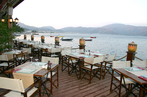 в 90 км от аэропорта г. Даламана, в 6 км от г. Мармариса, в 2 км от поселка Ичмелер, на самом берегу моря.