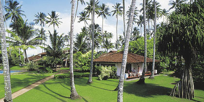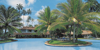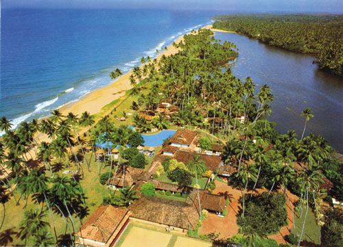 Замечательный отель, расположенный в шикарной кокосовой роще. Со стороны океана территорию отеля окаймляет великолепный песчаный пляж, а с противоположной – спокойные воды лимана. А на противоположном берегу лимана волнуется изумрудными кронами пальм, уходя на бесконечность, уже другое море – кокосовое… Отель идеально подходит для любителей уединенного спокойного отдыха. В тени пальм на большой территории разместились уютные шале, чудесные лужайки с лежаками, красивый бассейн. В 2005 г проведена полная реконструкция этого отеля.Расположение отеля Kosgoda Beach Resort: