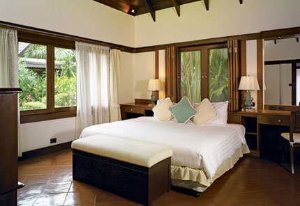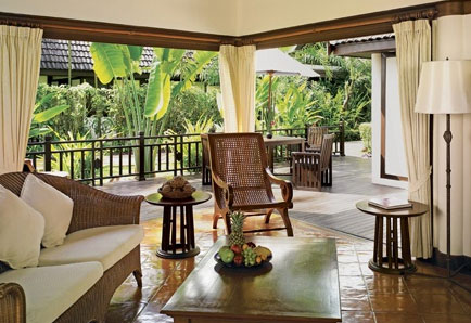 Номера оформлены в современном тайском стиле, с тиковыми полами и уютными балконами; просторные виллы, расположенные у пяти бассейнов, выполнены в традиционном тайском стиле и имеют чудесный вид на море и пышные сады.