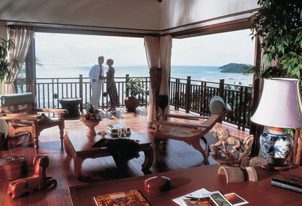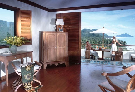 Deluxe Room - Oceanfront (67 кв. м) - оформлен в современном тайском стиле, с полами из полированного дерева; состоит из спальни с кроватью king-size, гостиной и рабочей зонами, ванной комнатой с ванной и отдельным душем, отдельной туалетной комнаты, меблированного балкона с видом на море