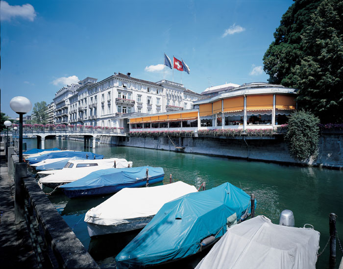 в самом центре города, на берегу озера в принадлежащем ему парке в непосредственной близости от шикарной улицы Bahnhofstrasse, знаменитой торговой и деловой улицы Цюриха. Отель находится буквально в двух шагах от всех главных достопримечательностей города. Международный аэропорт Цюрих-Клотен расположен в 12 км от отеля.