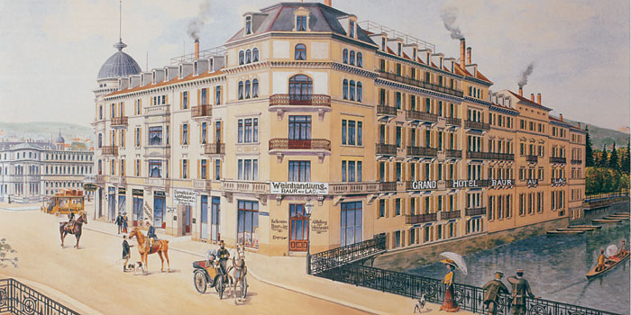 Все началось в 1844 году, когда австриец Иоганн Баур построил отель в Цюрихе. Первое время отель, больше похожий на большую виллу, играл роль элегантной резиденции для высокопоставленных гостей, путешествующих инкогнито. Необычайная популярность отеля с первых дней его существования и финансовый успех позволяли владельцам всегда уделять достаточно внимания и средств для поддержания отеля в идеальном состоянии. Это стало фундаментом безупречной репутации отеля. Стоит упомянуть, что с первого дня существования и уже более 156 лет отель принадлежит одним владельцам - известной Цюрихской семье Крахт.