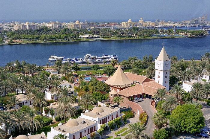 на берегу лагуны Халид, рядом с прекрасной набережной, в 5 мин. езды от центра Шарджи, в 15 км от международных аэропортов Шарджи и Дубая.
