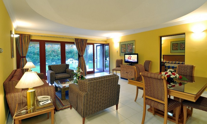 Junior Suite (37 кв. м) – состоит из спальни с двуспальной кроватью, гостиной, ванной комнаты. Макс. размещение – 2 взрослых и 2 ребенка (до 12 лет).
