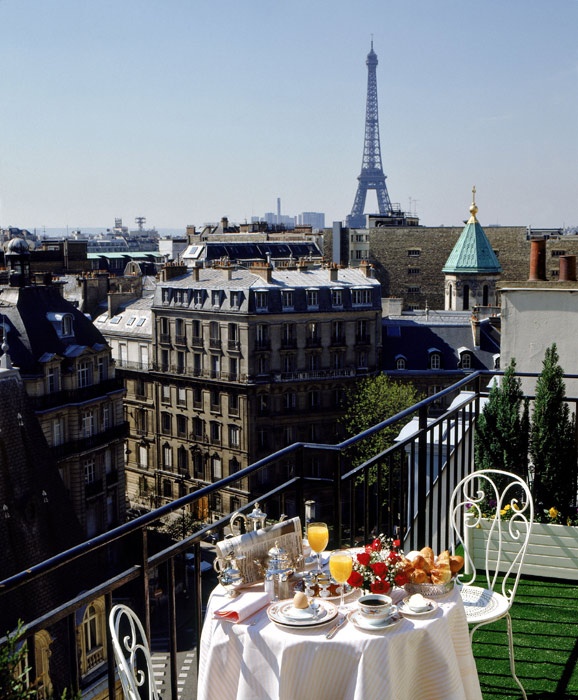 Suite (87-95 кв.м.) - номера на верхнем этаже оборудованы панорамной террасой с видом на Эйфелеву башню и витражную крышу Большого Дворца. Состоят из спальни, гостиной и мраморной ванной комнаты с ванной и душевой кабиной. Возможно совмещение 2-х номеров.